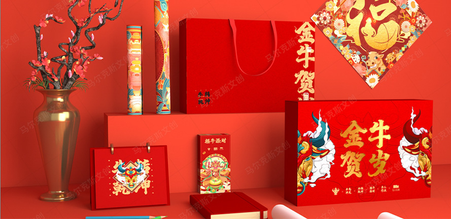 以马尔克斯文创设计公司为例,该公司注重品牌文化内涵的挖掘与传承,将“传承传统文化,创新现代设计”作为品牌使命。在各类文创产品设计中,始终坚守这一理念,让消费者在接触产品的瞬间,便能深刻感受到品牌独特的文化气息与核心价值。例如,其牛年礼盒包装设计,整体风格与品牌的文化内涵高度契合。礼盒主色调选取品牌标志性的红色,象征着喜庆与活力,搭配烫金的品牌logo与富有传统韵味的牛年图案,如祥牛纳福、金牛送财等。这些图案元素与品牌一贯倡导的传承传统文化的理念相呼应,从包装的外形到内部装饰,每一处细节都渗透着品牌独特的文化魅力,强化了品牌在消费者心中的印象。