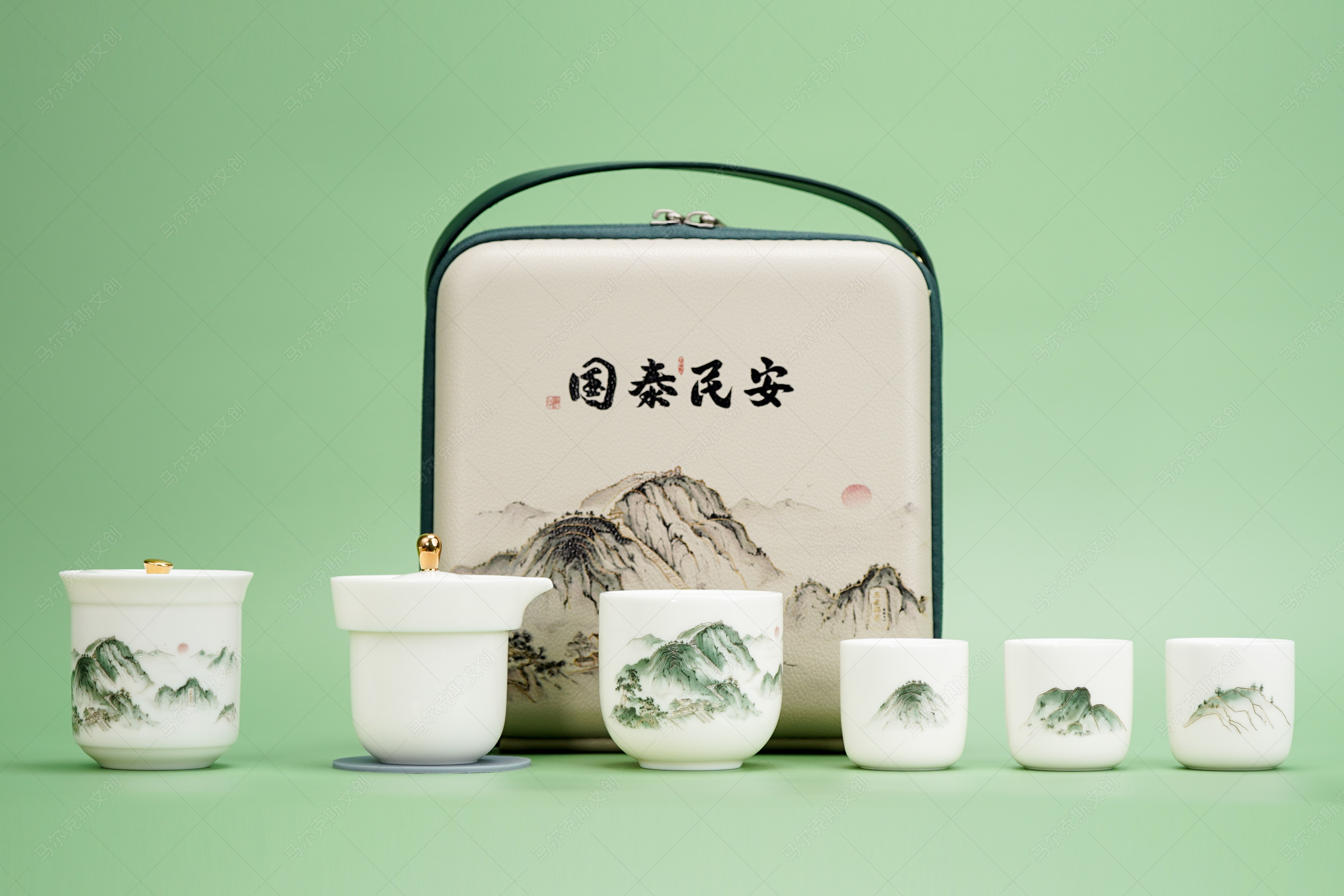 「国泰民安」泰山文创-快客一壶四杯旅行茶具